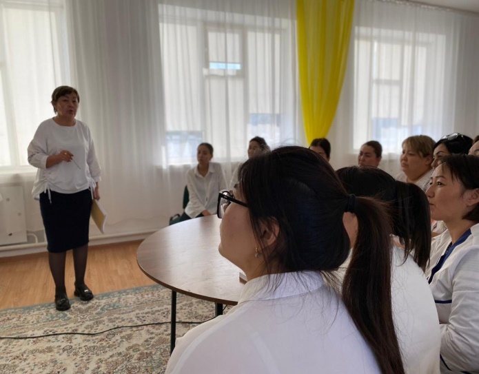 Қазан айының 19-21 күндері аралығында «Райхан» бөбекжай-бақшасында меңгеруші Э.Куанышева «Мектепке дейінгі ұйымдарда 2022-2023 оқу жылында тәрбиелеу-процесін ұйымдастырудың ерекшеліктері тақырыбында түсіндіру жұмыстарын жүргізді. Жаңа оқу жылында мектепке дейінгі тәрбиелеу мен оқытуды дамыту моделін жүзеге асыру мақсатында 2022 жылы 3 тамыздағы № 348 бұйрығымен бекітілген Мектепке дейінгі тәрбие мен оқытудың мемлекеттік жалпыға міндетті стандарты, 2022 жыл 9 қыркүйектегі № 394 бұйрығына 1 –қосымша Үлгілік оқу жоспары, 2022 жыл 14 қазандағы 422 бұйрығымен бекітілген Мектепке дейінгі тәрбие мен оқытудың үлгілік оқу бағдарламасы, 2022-2023 оқу жылына арналған Әдістемелік нұсқау хатпен таныстырды. Қатысқан педагог саны – 20.